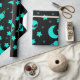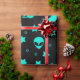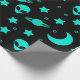 Turquoise Alien Pattern with Stars and Moons Wrapping Paper