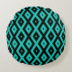 Turquoise and black diamond pattern round cushion