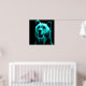 This pretty design features a portrait of a cute grizzly bear in brilliant turquoise on a black background.