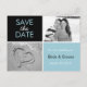 Save the Date photo postcards with your choice of adding 1 or 2 photos. Leave in the bottom photo of the heart in the sand if you wish. Chic black and aqua block design with an easy to use template - just add the names of the Bride & Groom, along with the wedding date in the space provided.