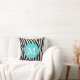 Cute trendy girly chic turquoise and black zebra stripe custom monogram pillow. Add a personalised, stylish zebra print pillow to your living room or bedroom. Change the font style, move text, and more by clicking on the "Customise It" button.