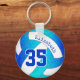 This cute girls' volleyball keychain features a turquoise to blue gradient volleyball graphic with contrasting white panels that has an artsy floral kaleidoscopic pattern blended with the coloured volleyball panels - her name and jersey number are customisable in a coordinating blue - by katz_d_zynes