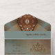 A rustic western turquoise and brown design for your wedding planning. An all in one invite that includes tear off RSVP.