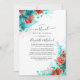 Turquoise and coral watercolor roses and tropical foliage long distance virtual wedding invitation with trendy handwriting typography designed to be quickly and easily customised.