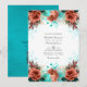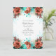 Turquoise and Coral Rustic Floral Wedding Photo In Invitation