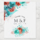 Turquoise and coral roses and tropical foliage summer wedding wine labels designed to be quickly and easily customised to your event specifics.