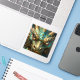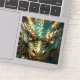 A sticker with a cool close up illustration of a turquoise and metallic gold dragon face with realistic eyes.