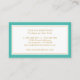 This elegant and feminine template business card features thick turquoise and thin gold border. Place your name or business name on the front side of the card and info on the back side of this business card.