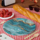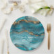 Turquoise and Gold Glitter Agate Paper Plate
