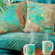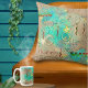 Turquoise And Golden Ancient Wisdom Boho Cushion