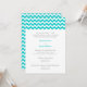 These modern and stylish wedding invitations have a chevron band at the top with grey text and contrasting turquoise elements.