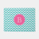Turquoise and Hot Pink Chevron Custom Monogram Doormat