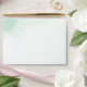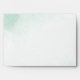 Beautiful wedding envelope featuring turquoise and light blue flowers and green leaves