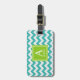 Turquoise and Lime Monogram Chevron Print Luggage Tag