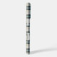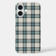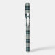 Phone case with a turquoise, navy blue, and cream rustic plaid pattern with subtle moss green highlights.