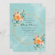 Turquoise and Orange Peony Wedding Invitation
