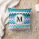 Turquoise and Pink Chevron with Custom Monogram Cushion