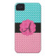 Turquoise and pink polka dots monogram Case-Mate iPhone case
