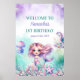 Turquoise and purple mermaid 1st birthday welcome poster