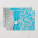 This stunning aqua blue and silver grey floral damask Reply card matches the monogrammed wedding invitation shown below. The text and paper choices are fully customisable. If you require any matching items, please email your request to niteowlstudio@gmail.com.