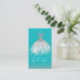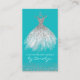 Elegant dress seamstress business card, with graphics of a white and silver glitter dress, against a turquoise background, with silver glitter looking accents. Personalise the text to suit your business needs. A lovely stand out card for your tailoring business.