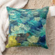 Turquoise and Teal Abstract Watery Paint Pour Cushion