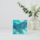 Turquoise and Teal Alcohol Ink Abstract with Gold Enclosure Card
