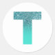 Turquoise and Teal Ombre Glitter Monogram T Classic Round Sticker