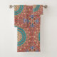 Turquoise and Terracotta Geometric Mandala Pattern Bath Towel Set