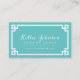 Turquoise and White Chic Greek Key Border Business Card