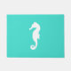Turquoise And White Coastal Decor Seahorse Doormat