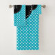 Turquoise and white polka dots with black monogram bathroom towel set. We carry coordinating bath mats, shower curtain and other accessories in our store.