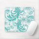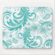 Turquoise And White Retro Flowers & Swirls Design Mouse Mat