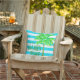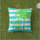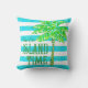 Turquoise and White Stripe Palm Tree Island Time Cushion