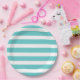 Turquoise and White Stripes Paper Plate