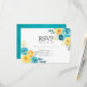 Turquoise and yellow - teal and lemon watercolor floral wedding RSVP with accents of coral featuring aquarelle flowers and foliage.