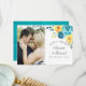 Turquoise and yellow - teal and lemon floral wedding thank you photo cards with accents of coral featuring aquarelle flowers and foliage.