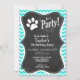 Turquoise, Aqua Colour Chevron; Paw Print Invitation
