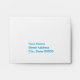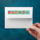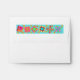 Cusomizable an evelope and add an address either for return or RSVP. Quilt art based on original art features favourite patchwork quilt blocks plus unique blocks in vibrant and dynamic colours of orange, yellow, pink, turquoise, and lime green on a turquoise aqua blue background for a beautiful colour palette.