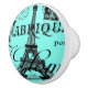 turquoise aqua teal scripts Paris Eiffel Tower Ceramic Knob
