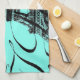 turquoise aqua teal scripts Paris Eiffel Tower Tea Towel