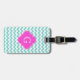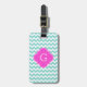 Turquoise / Aqua White Chevron Quatrefoil Monogram Luggage Tag