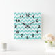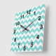 Turquoise Aqua White Chevron Zig Zag Pattern Square Wall Clock