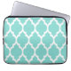 Turquoise Aqua Wht Moroccan Quatrefoil Pattern #4 Laptop Sleeve