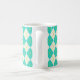 A vibrant turquoise argyle pattern decorates this coffee mug. The design is from original art.