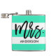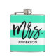 Turquoise Awning Stripes and Mrs. Text Hip Flask