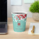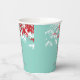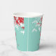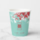 Oriental zen red, turquoise blue and white bamboo leaves with a minimalist double happiness symbol within a simple rectangle frame wedding party paper cup.