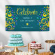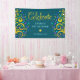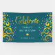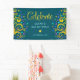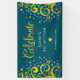 Be proud, rejoice and showcase this milestone of your favourite Bat Mitzvah! Hang up this stunning, modern, stylish, personalised banner to add to her special day. Sparkly, gold, faux foil calligraphy script, light pink typography, and two abstract, graphic, gold foil trees with sparkly turquoise, teal, purple and blue Star of David and dot “leaves” overlay a rich, dark teal blue background. Personalise the custom text with your Bat Mitzvah’s name and date or custom message. Guaranteed to preserve cherished memories of her special occasion! Matching and coordinating invites, address labels, stickers, keepsake binders, and other Bat Mitzvah goodies are also available in this trendy and special collection.