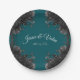 Turquoise Black Grey Roses Gothic Wedding Paper Plate