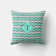 Turquoise, Black & White Chevron, Custom Monogram Cushion